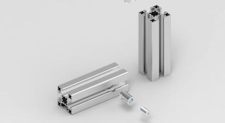 将弹性螺母装入型材中,将圆形柱装入另一根型材内,使用螺栓将其固定。